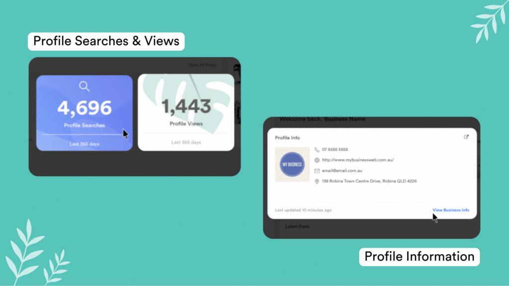 If you want to take a quick dive into your analytics, you can see your ‘Profile Searches’ and ‘Profile Views’ at the bottom of the home page. This is a fast and effective way to check how your Business Profile has been performing over the past year.