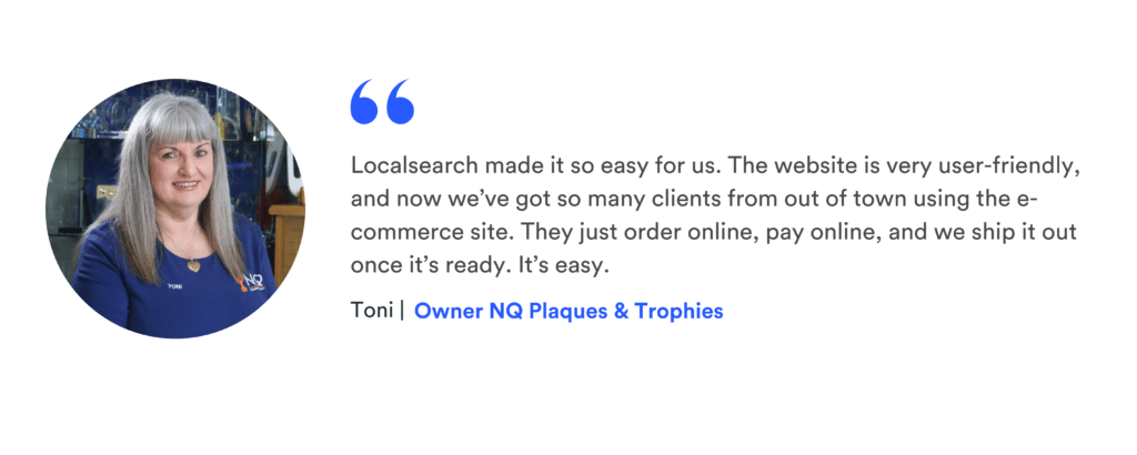 As a local business, NQ Plaques & Trophies has been a key supplier of awards, plaques, and custom trophies across North Queensland. With owner Toni Barton at the helm, one from strength to strength. To stay ahead in a rapidly evolving market, Toni turned to Localsearch to help boost her online presence and enhance her business’s growth through a powerful e-commerce website.